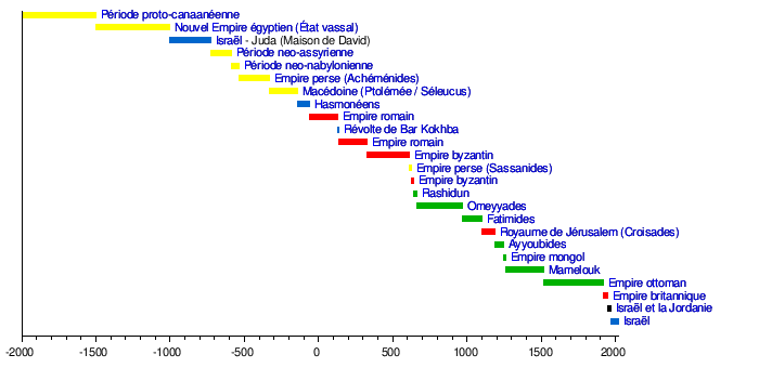 Premièrement : Si on utilise comme base de données Wikipédia, qu’on ne peut pas VRAIMENT assimiler à un organe de propagande sioniste, voici la frise Chronologique des différentes puissances ayant administrées Jérusalem :